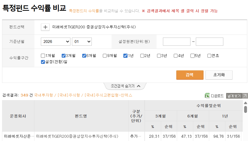 📅 금융투자협회에서 1년 수익률 확인하는 경로